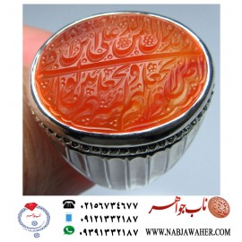 مشخصات انگشتر:انگشترمردانه نقره عقیق سرخ خطی حکاکی هو حق مددی یارب نظری خط شمس و رکاب دستسازیک تیکه وحید امامی حکاکی روی نگین » هو حق مددی یاحق نظری حکاکی » استاد مهدی شمس رکاب دستسازوحید امامی..
