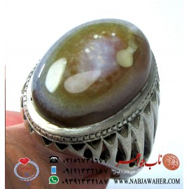 انگشترخاص و ویژه عقیق سلیمانی یمنی و رکاب نقره فابریک قلمزنی ساخت یمن