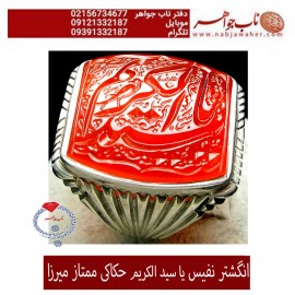 انگشترنفیس مردانه عقیق سرخ یمنی خط میرزا حکاکی استاد مجتبی اتشباز ذکر یا سیدالکریم رکاب سیدحسن