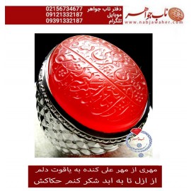 مشخصات انگشتر : انگشتر فاخر عقیق سرخ یمنی تراش دامله رکاب : نقره دست ساز ضیا با گوارسه های طلایی با مهر و امضا وزن انگشتر : 18 گرم سایز رکاب :61 قطر سنگ : 14 میلیمتر انگشتر , فاخر , عقیق , کهنه , یمنی , تراش , دامله , رکاب دستساز..