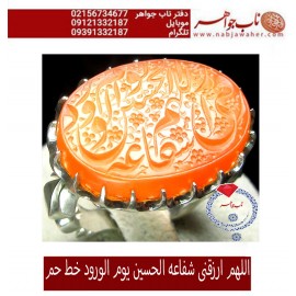 انگشترنفیس خطی نقره مردانه عقیق_یمنی خط_حم ،حکاکی علی_همتی، رکاب_استادمحمد_افتخاری ،رکاب_تهران_افتخاری وحکاکی_اللهم_ارزقنی_شفاعه_الحسین_یوم_الورود