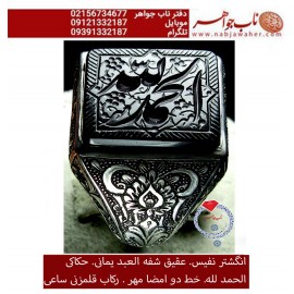 انگشترنفیس مردانه آپسیدین خط اقل میرزا حکاکی مجتبی آتشباز و ذکر یا محمد رکاب افتخاری و قلمزنی ساعی سفارش ناب جواهر