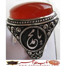 انگشتر فاخرنقره و عقیق سرخ یمنی قلمزنی استاد محسن جنگی