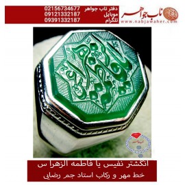 انگشترنفیس خطی نقره مردانه عقیق_سبز خط_مهرحکاکی محسن_سعیدی_منش رکاب_استادجم_رضایی وحکاکی ذکر_یافاطمه_الزهرا