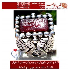 مشخصات انگشتر:انگشترنفیس خطی نقره مردانه عقیق_یمنی خط_مهر،حکاکی محسن_سعیدی_منش رکاب_شیرازی ، وحکاکی یااباعبدالله_الحسین..