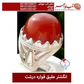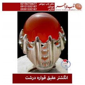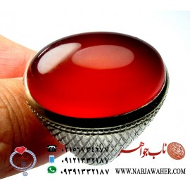 نگین : عقیق سرخ درشت گرد 21 میلیمتر رکاب : نقره سیلندری سایز :62 وزن : 24 گرم ۰۹۱۲۱۳۳۲۱۸۷..