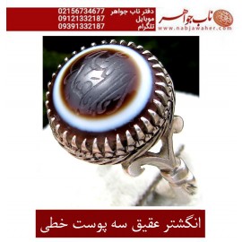 انگشترعقیق سه پوست شمایل و رکاب قلمزنی کد 5123