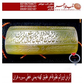 گردن آویزنفیس عقیق نباتی یمنی درشت و کهنه لول شش ضلعی حکاکی سوره های توحید و فلق