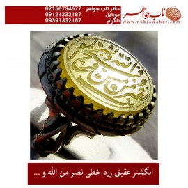 انگشترفاخرعقیق زرد نباتی یمنی حکاکی خط عراقی