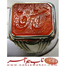 مشخصات:نگین خطی عقیق یمنی حکاکی استاد رضا قربانی خط حرّ ذکر السلام علی فاطمه الزهراام السبطین الحسن والحسین..