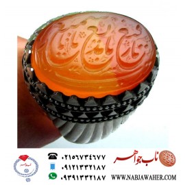 انگشترنفیس مردانه عقیق سرخ یمنی خط سیدمرتضی شیرازی حکاکی سیدمرتضی حمیدی شیرازی ذکر پنج تن اهل کساء رکاب فدیوم مهدی جدی