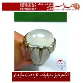 انگشترعقیق سفیدابعاد سنگ : 20 در 15 میلیمتررکاب : نقره دست ساز میثم با مهر و امضاسایز رکاب : 62 وزن انگشتر : 18 گرم۰۹۱۲۱۳۳۲۱۸۷ ..