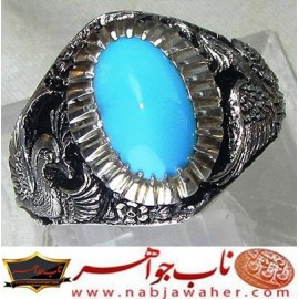 مشخصات انگشتر:انگشترنفیس مردانه فیروزه ناب نیشابوری رکاب فاخر و ارزشمند قلمزنی سیمرغ اثر حمید جنگی..