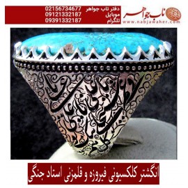 مشخصات انگشتر: انگشترنفیس مردانه فیروزه شجرناب نیشابوری رکاب فاخر مهدی رحمانی قلمزنی جنگی