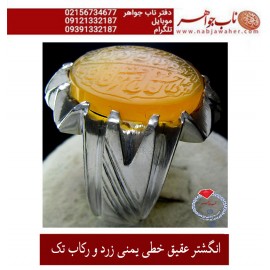 انگشتر عقیق خطی یمنی زرد و رکاب تک