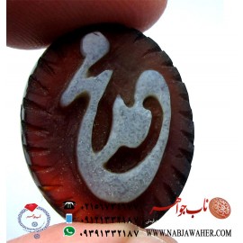 نگین خطی برجسته عقیق سه پوست حکاکی ذکرمحمد مناسب انگشتری 22 در 18 میلیمتر..