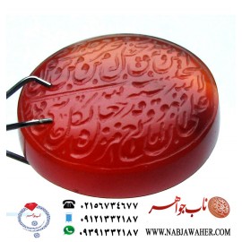نگین انگشتری عقیق خطی ایت الکرسی حکاکی میرعماد حکاکی به سفارش ناب جواهرحکاکی استاد مهدی شمس زنجانی 20 میلیمتر..
