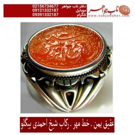 مشخصات انگشتر:انگشترمردانه نقره عقیق سرخ خطی حکاکی هو حق مددی یارب نظری خط شمس و رکاب دستسازیک تیکه وحید امامی حکاکی روی نگین » هو حق مددی یاحق نظری حکاکی » استاد مهدی شمس رکاب دستسازوحید امامی..