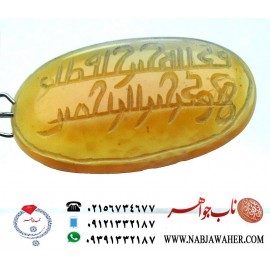 نگین خطی عقیق زرد زجاجی خط کوفی مناسب انگشتری و گردن اویز 26 در 16 میلیمتر..