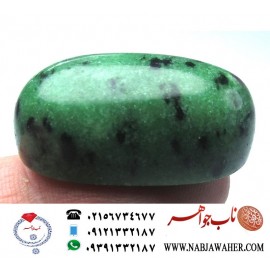 نگین گارنت درشت سبز تراش دامله بادومی مناسب انگشتری و گردن آویز وزن سنگ » 19 گرم ابعاد سنگ » 33 در 17 میلیمتر..