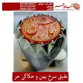 انگشترنفیس عقیق سرخ یمنی یا امام حسین حکاکی محسن ضرغامی خط م ض ورکاب محمدافتخاری